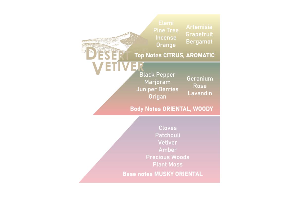 De Desert Vetiver Eau de Parfum van het Italiaanse merk Saponificio Varesino bezit een aantrekkelijke compositie van warme toegankelijke geurtonen. Laat Desert Vetiver je zintuigen ontwaken waarin topnoten van elemi, wierook, sinaasappel en artisemia plaatsmaken voor het kruidige hart van deze geur met tonen van zwarte peper, jeneverbes, oregano en lavendel. Als basisgeur blijven de elegante houtachtige tonen aangevuld met vetiver, verfrissende kruidnagel en verleidelijke noten van amber je zeker bij. Een mannelijke geur met een uniek en onmiskenbaar karakter!
