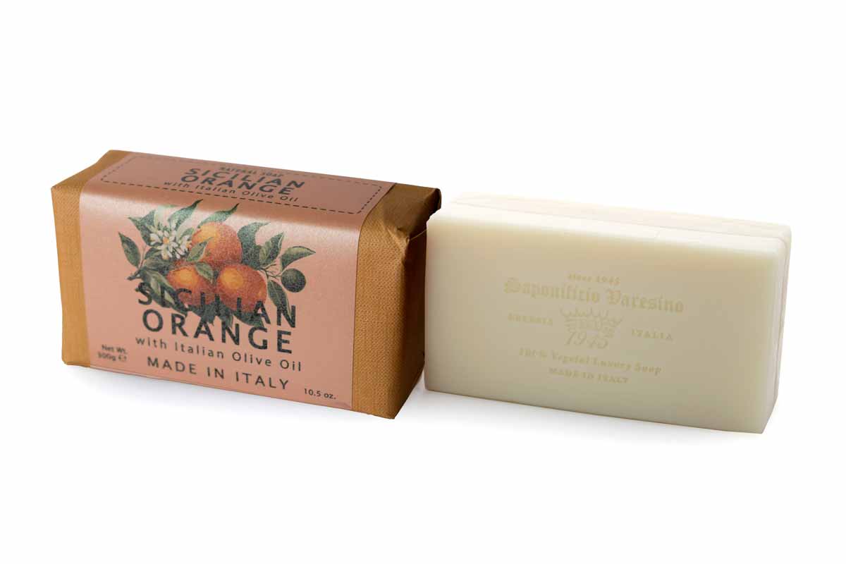 Zeeptablet geparfumeerd met de geur van Siciliaanse sinaasappel, verrijkt met echte Italiaanse olijfolie.