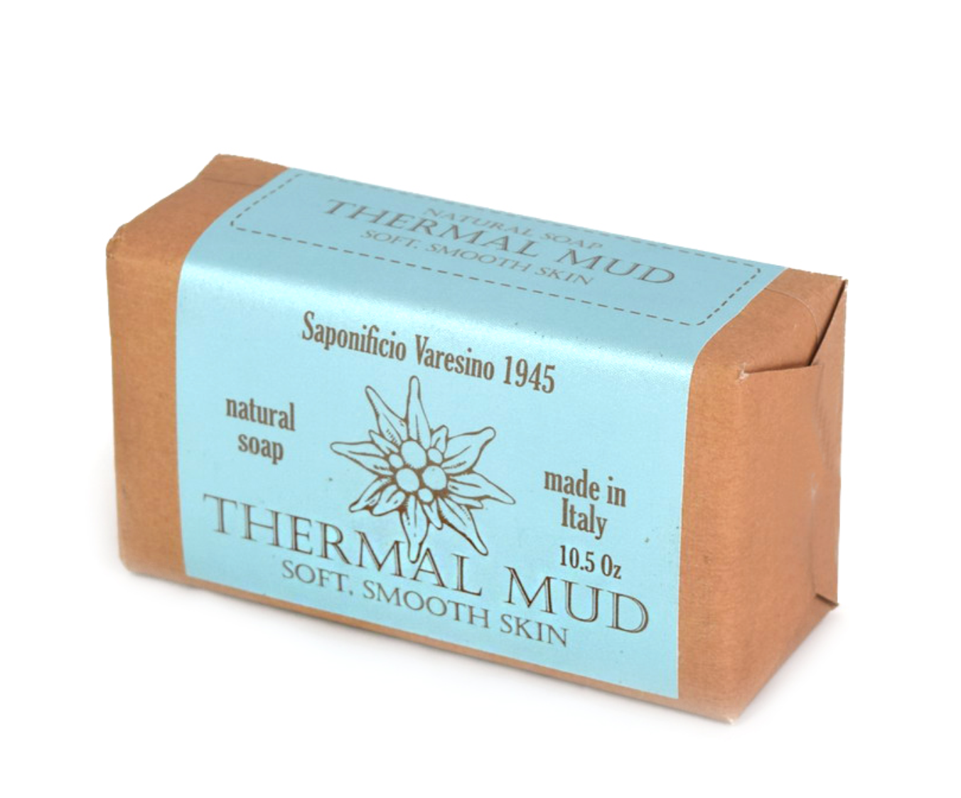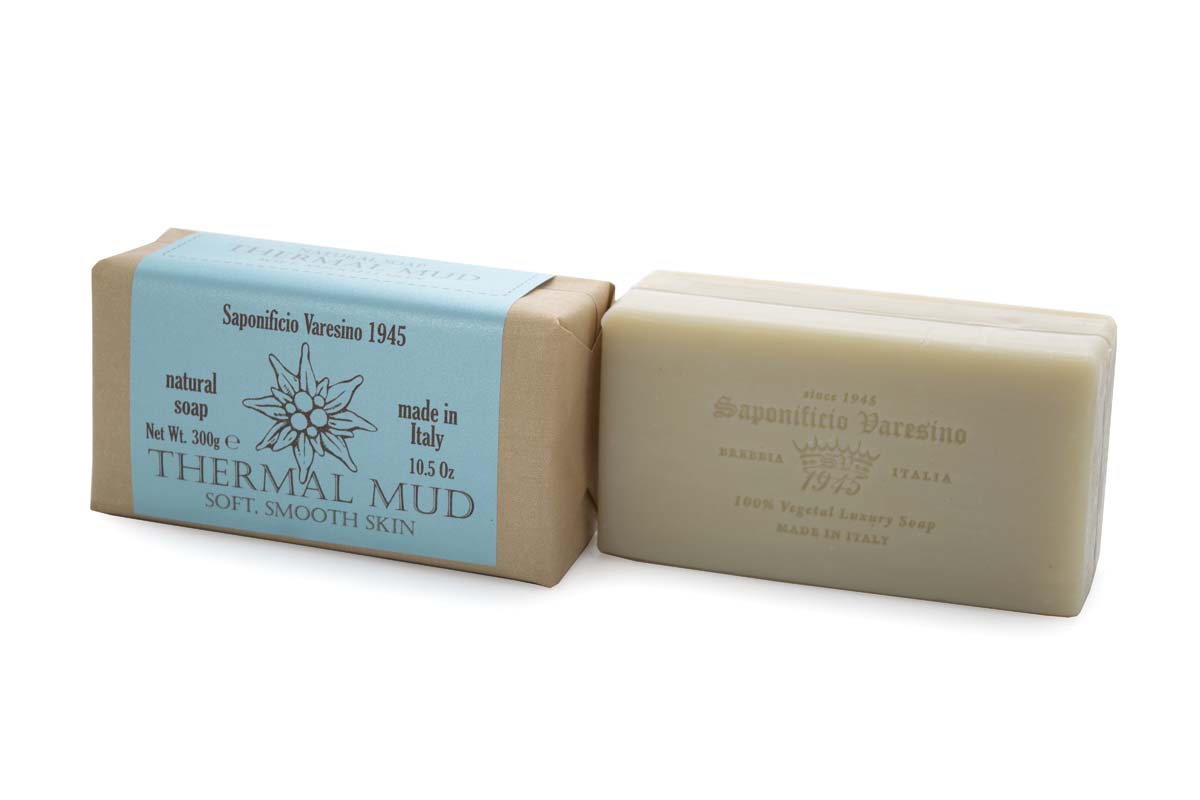 De handmatig gesneden en verpakte Thermal Mud Soap Bar gebruikt de pure antioxiderende kracht van de edelweiss bloem met een mineraalrijke vulkanische modder om jouw huid op een milde wijze te reinigen en hydrateren. Ervaar de bevordering van een meer stevig en rimpelvrije huid. Saponificio Varesino biologische plantaardige zeep is veganistisch en uitsluitend gemaakt van kokosolie en natuurlijke ingrediënten. Deze drievoudig gemalen zeep is voorzien van een textiele label over de traditionele bruine papieren basisverpakking – een zowel aantrekkelijk als duurzame verpakkingsvorm.