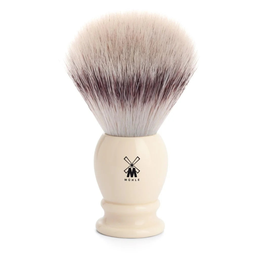 Een echte "Classic" Scheerkwast van Muhle gemaakt van hoogwaardige synthetische vezels. Het handvat is vervaardigd van Ivoorkleurig Edelhars en geeft een authentieke luxe uitstraling.