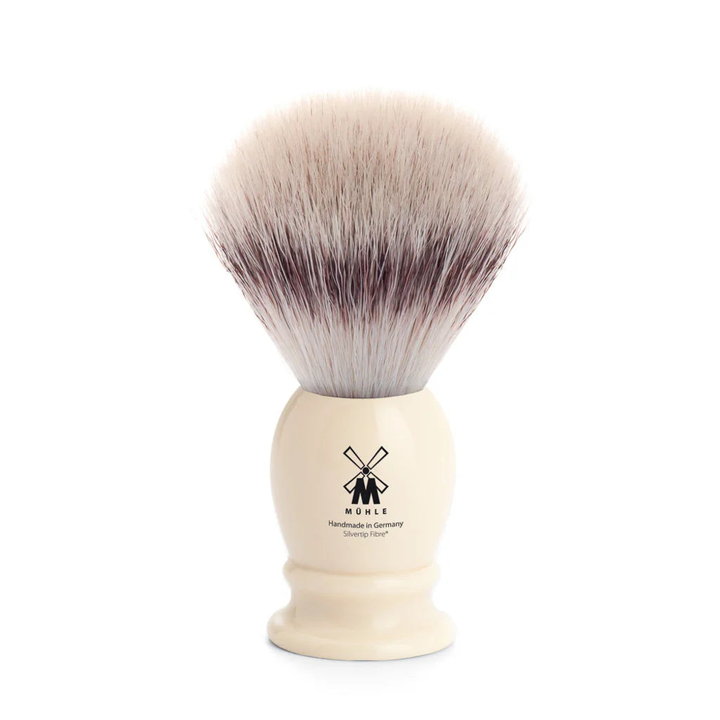 Een echte "Classic" Scheerkwast van Muhle gemaakt van hoogwaardige synthetische vezels. Het handvat is vervaardigd van Ivoorkleurig Edelhars en geeft een authentieke luxe uitstraling.